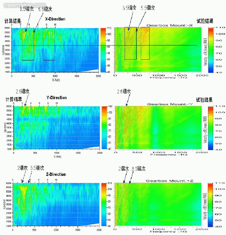 3.6.1 变速箱支架端振动结果比较