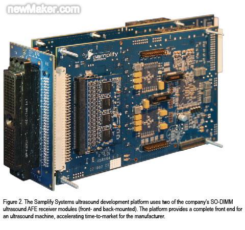 这个模块可以有两种不同的外形结构进行安装:一种是46X67.6mm的平面安装方式,可以用于便携式机器;还有一种是10X67.6mm的垂直安装方式,可以用于通道密度较高的机器。它们有两种版本规格,用来支持机器所要求的可选连续波多普勒(CWD)模式,如图2所示。